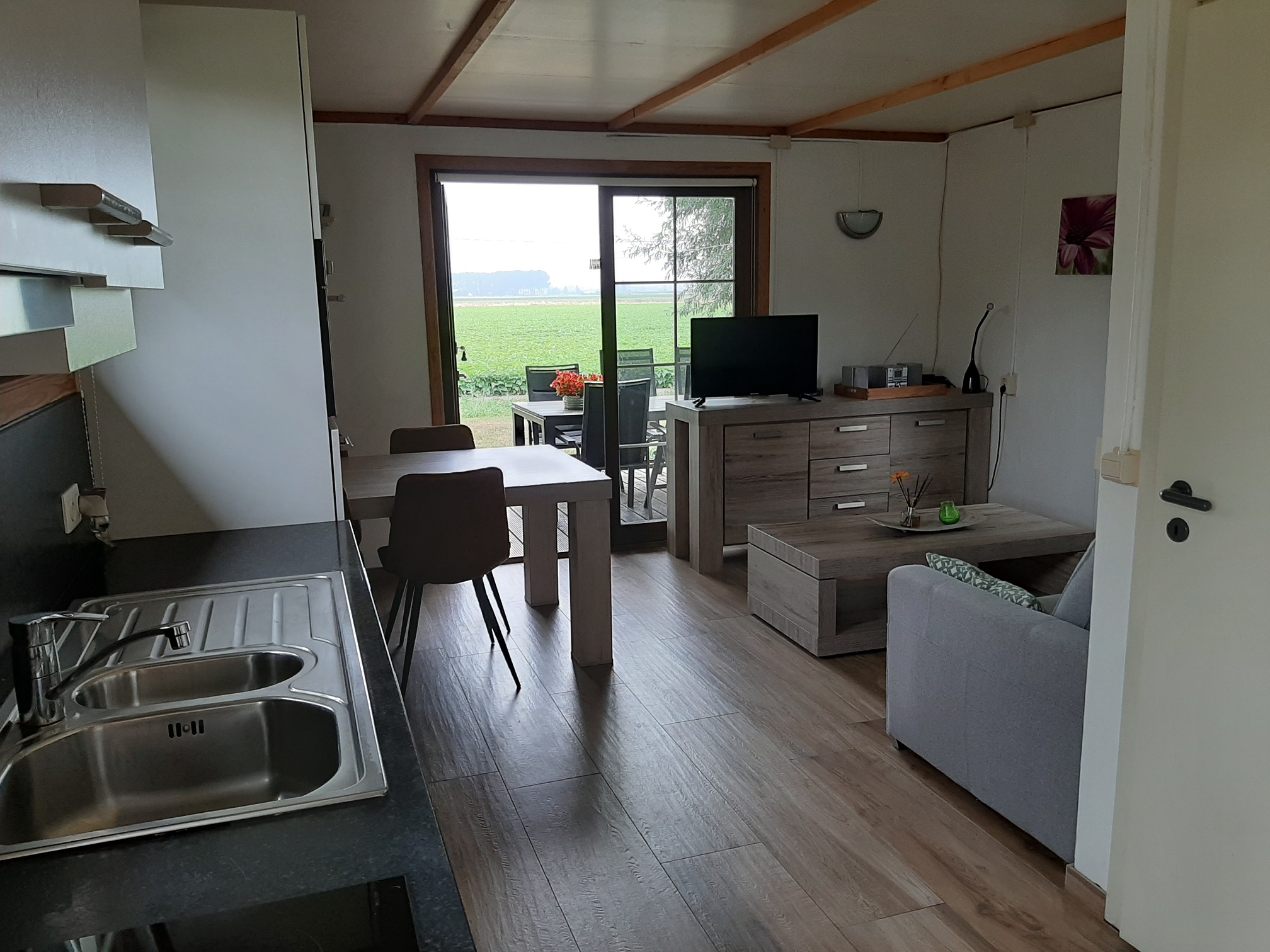 met uitzicht over de velden